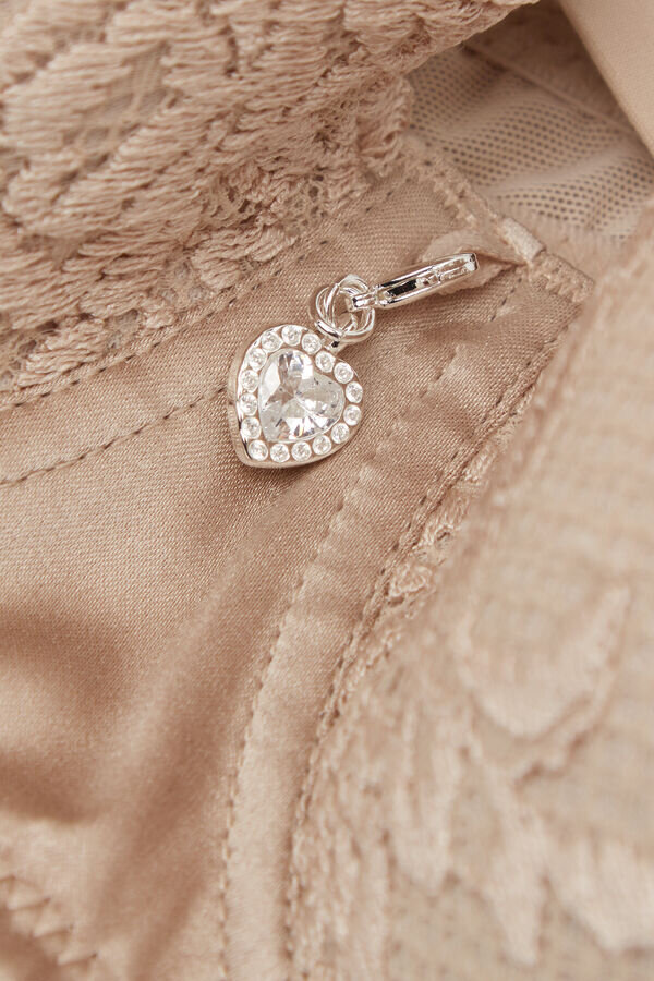 Der Sofia Balconette-BH besteht aus Cups aus Stretch-Seidensatin und ist mit raffinierter Stretch-Spitze mit Blumenstickerei und einem eleganten Unterband aus Stretch-Seidensatin verziert, das in der Mitte mit einem hübschen Herzanhänger mit Strasssteinen verziert ist. Dieser BH formt auf natürliche Weise und bietet maximalen Komfort. Er eignet sich perfekt, um ihn unter einem Ausschnitt oder einem durchsichtigen Oberteil zu tragen.