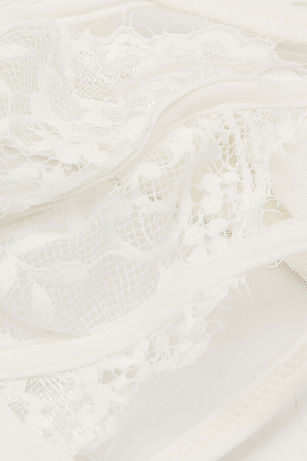 Triangel-BH, der die Eleganz romantischer Wimpernspitze mit der Sinnlichkeit durchsichtigen Tülls verbindet. Die Rippung an den Cups sorgt für einen verführerischen und verspielten Look. Weiche Mikrofaser-Verzierung.