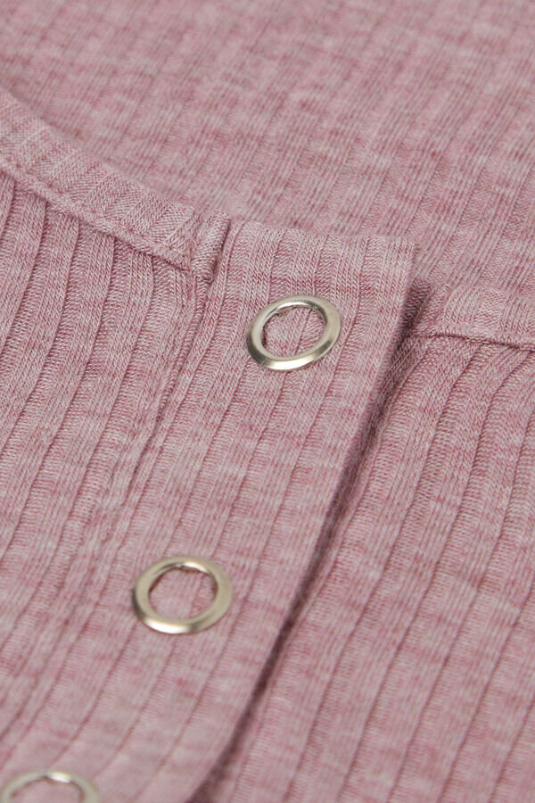 Top aus weichem, geripptem Modal mit automatischem Knopfdetail am Ausschnitt.