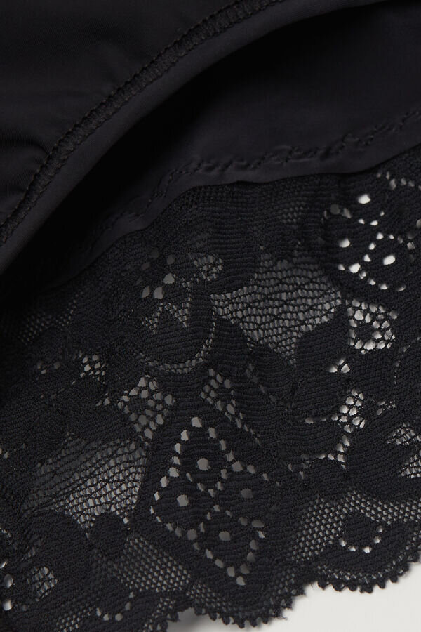 Slip aus weicher Mikrofaser mit romantischer Spitzenrüsche am Rücken. Ideal für alle, die bequeme Unterwäsche mit guter Abdeckung suchen.