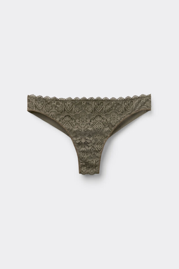 Entdecken Sie die Brazilian-Slips aus Spitze und Mikrofaser von Intimissimi mit Stretch-Spitze in geometrischem Design, romantischen Rüschen und einer weichen, doppellagigen Rückseite aus Mikrofaser.