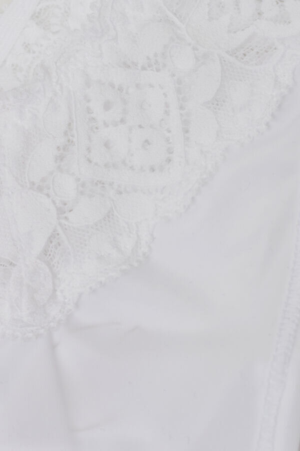 Die Spitze ist von französischer Spitze aus dem frühen 20. Jahrhundert inspiriert und sorgt für einen raffinierten und eleganten Stil, der geometrische und florale Motive perfekt miteinander verbindet. Sie fühlt sich weich und sinnlich auf der Haut an und sorgt für einen eleganten und romantischen Look.