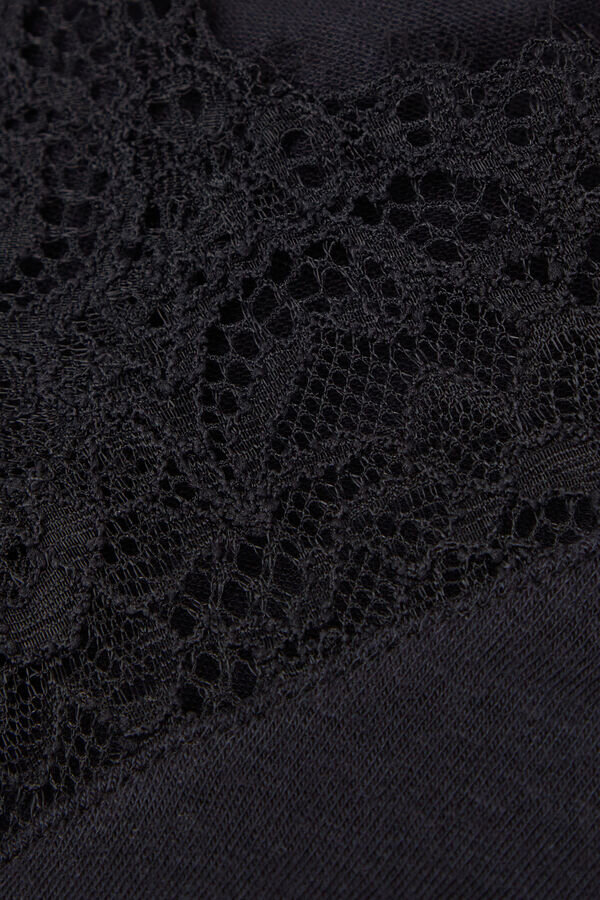 Body aus einer weichen, ultraleichten Modal-Kaschmir-Mischung, verziert mit einer Spitzenrüsche am Ausschnitt. Warm und kuschelig, eignet er sich perfekt zum alleinigen Tragen oder unter einer Jacke. Der leicht transparente Effekt macht ihn sehr feminin.