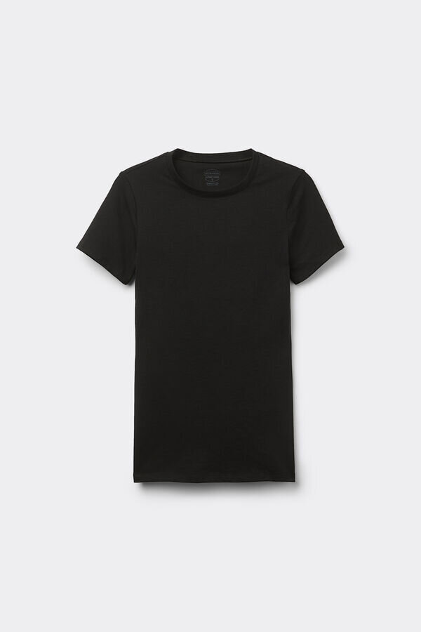 Kurzarm-Top mit Rundhalsausschnitt aus Stretch-Baumwolle Superior. Ein schlichtes und bequemes Top, ideal für jede Gelegenheit, entweder als Unterwäsche oder solo für einen lässigen Look.