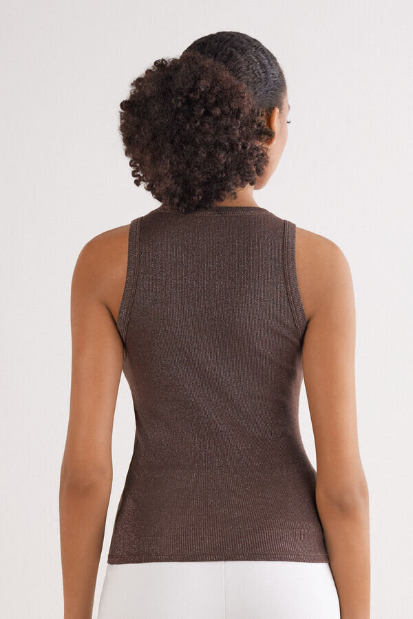 Geripptes Baumwoll-Lamé-Tanktop mit Rundhalsausschnitt.