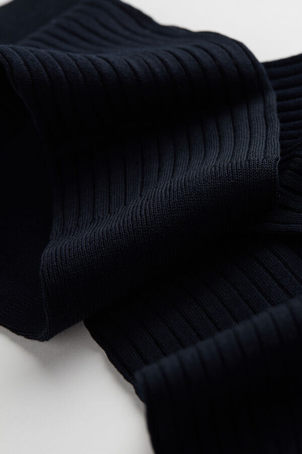 Hohe Herrensocken mit langem Bündchen aus gerippter ägyptischer Baumwolle, einem besonders knackigen, leichten und atmungsaktiven Stoff. Klassischer Stil.