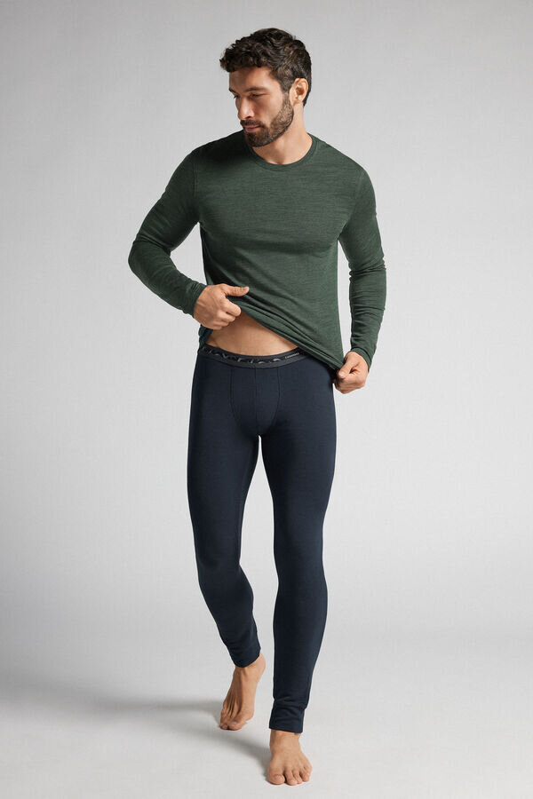 Herren-Leggings aus einer Modal-Kaschmir-Mischung mit umgeschlagenem Saum und sichtbarem Bund. Ideal für den Sport. Das Model ist 185 cm groß und trägt Größe L. Erhältlich in den Intimissimi Man Stores.
