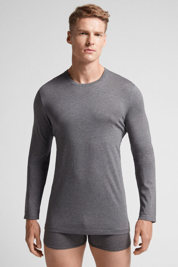 Langärmliges Oberteil mit Rundhalsausschnitt aus 100 % hochwertiger Baumwolle. Die Faser von höchster Qualität ist unglaublich weich und atmungsaktiv und zeichnet sich durch optimale Elastizität aus, obwohl sie frei von Elasthan ist. Die Struktur des Stoffes garantiert eine ausgezeichnete Haltbarkeit beim Waschen. Ein schlichtes und bequemes Oberteil, ideal für jede Gelegenheit, entweder als Unterwäsche oder solo getragen.