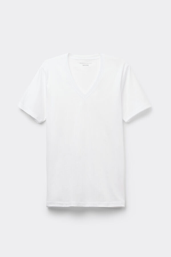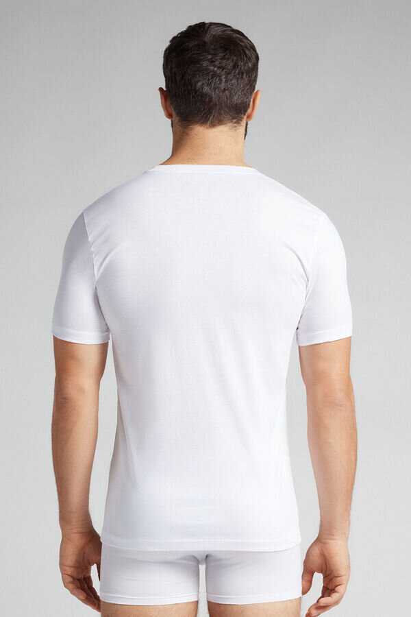 T-Shirt aus feiner, hochwertiger merzerisierter Baumwolle. Sehr bequem und angenehm zu tragen, aus weicher, frischer und seidiger Baumwolle. Unsichtbar unter einem leicht aufgeknöpften Hemd. Dank seines eleganten und raffinierten Stils eignet es sich auch perfekt zum Tragen unter einer Jacke.